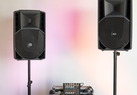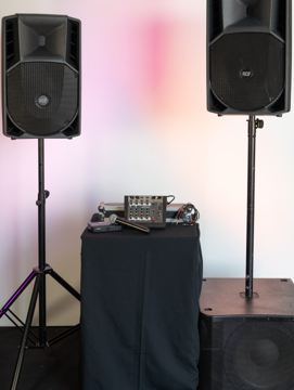 • Qty 2 x Commercial-grade RCF 15″ Speakers (1400 watts each)